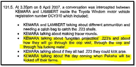 It is unarguably true that many of the peoples of the world consider the presence of whites in Australia and New Zealand illegitimate. Decolonisation movements have expelled white people in many places. Beginning in Haiti, white people have been pushed out of Kenya, Algeria and Rhodesia and are now getting pushed out of South Africa. There is a fanatical decolonisation movement here in New Zealand, as evidenced by the image below, from a Police report on Uruwera terrorist Rangi Kemara.